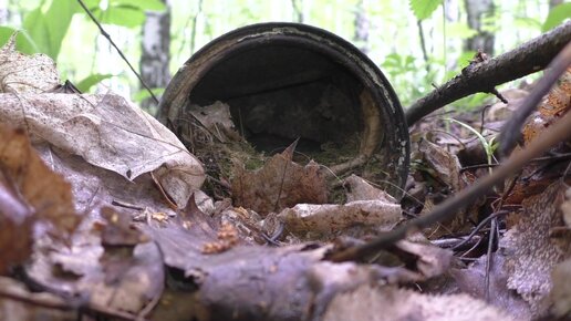 Гнездо зарянки в старой банке из-под краски