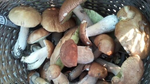 Грибы найденные в Одинцовском лесу Подмосковья собирают в корзинки.