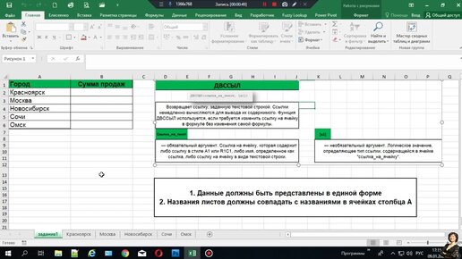 Подсчёт суммы в excel с разных листов. Функция ДВССЫЛ