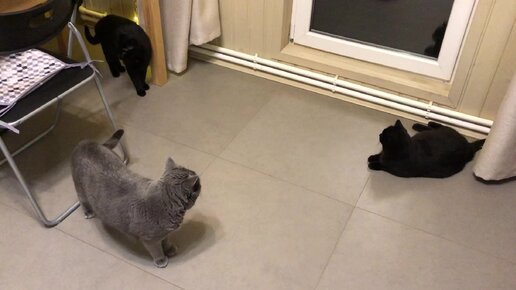 Коты просятся гулять но я их не выпускаю, так как время позднее и пора спать.