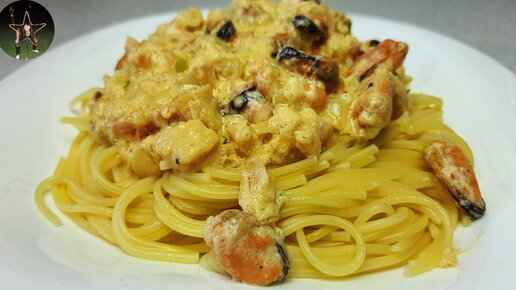 Паста с море продуктами.Паста с креветками и сливочно-сырным соусом.PASTA WITH SHRIMP.
