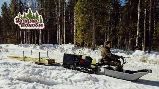 Мототолкач использую как лесовоз. Справляется не хуже снегохода