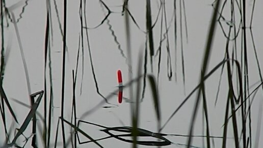 Рыбалка на крупного карася в густом камыше. Поплавок крупным планом