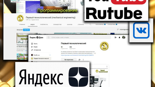 Публикации на YouTube vs Рутуб, в VK (в Контакте) и Яндекс Дзене.