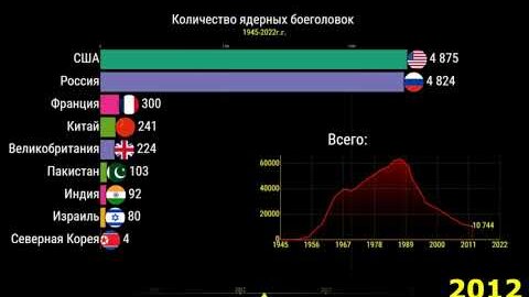 Количество ядерных боеголовок 1945-2022. Сравнение стран (статистика по годам)