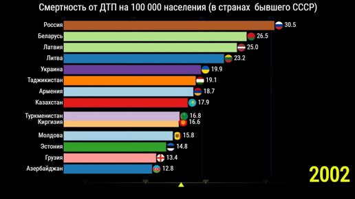 Смертность от ДТП на 100 000 населения в странах бывшего СССР