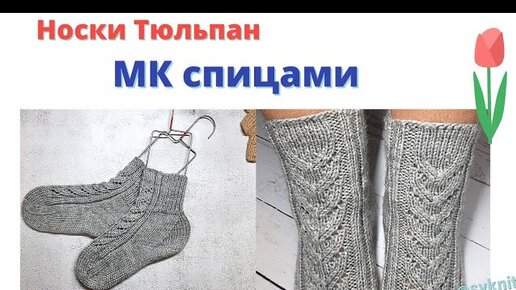 МК носки с узором Тюльпан спицами/пятка стронг/ленточное убавление петель/закрытие шов петля в петлю
