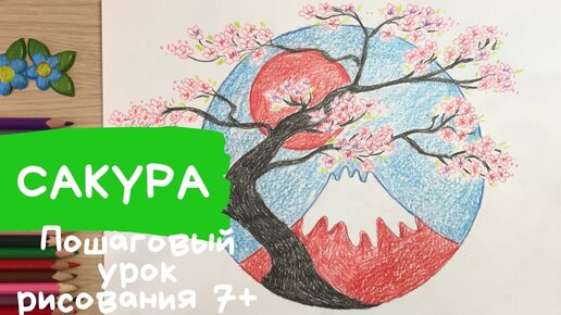 Сакура рисунок. Япония рисунок Как нарисовать Японию нарисовать сакуру цветущее дерево весна рисунок. Карандаши и краски