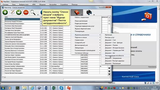 Журнал документов Листок нетрудоспособности