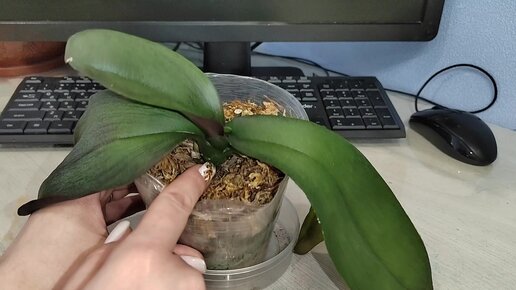 ОСЛАБЛЕННАЯ, безжизненная, но полная сил орхидея. Только сейчас будет пересадка