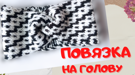 Весенняя Повязка на голову | Ленивый жаккард | Вяжем спицами
