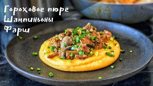Фарш с грибами и гороховым пюре - Съели всё и сразу😋