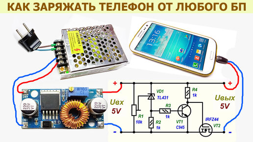 Устройство, позволяющее заряжать телефон, смартфон, планшет практически от любого блока питания, с защитой от перенапряжения