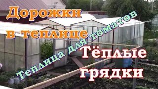 Теплица для томатов.Необычные дорожки в теплице.Тёплая грядка.