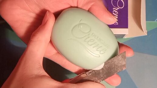 Резка мягкого очень классного зелёного мыла Delicare creme освежающее