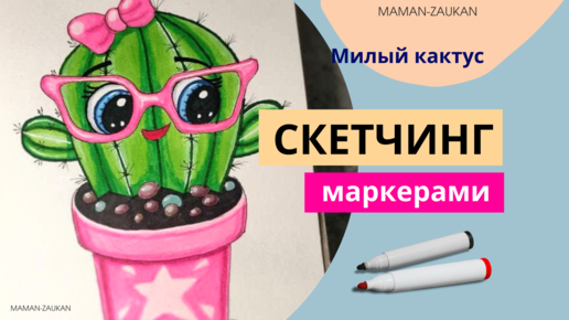 Милый кактус - Идеи для рисования маркерами