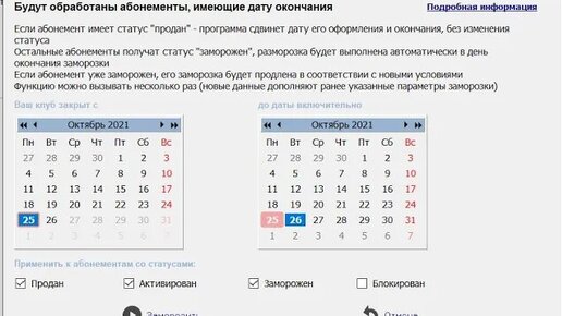 Тотальная заморозка действующих абонементов (карт) при временном закрытии клуба / спортзала / школы