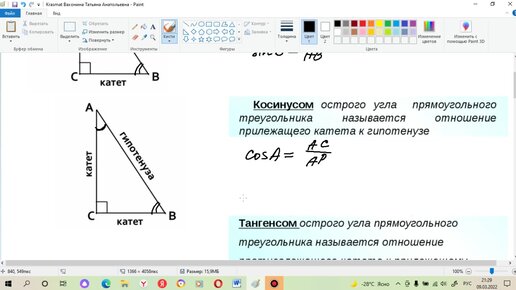 Определение синуса, косинуса, тангенса острого угла прямоугольного треугольника