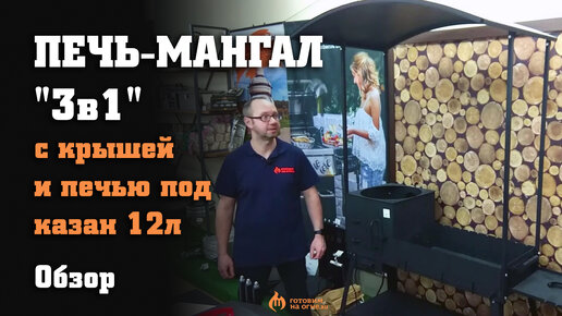 Печь-мангал "3в1" с крышей и печью под казан 12л