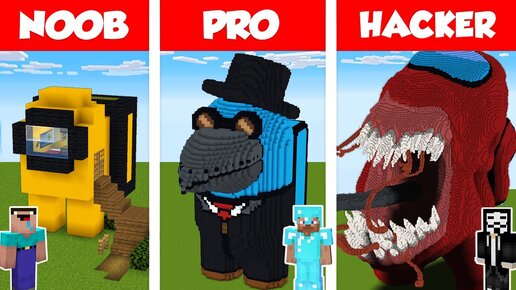 Майнкрафт НУБ против ПРОФИ против ХАКЕРА: СРЕДИ НАС ЗАДАЧА ПОСТРОИТЬ ДОМ в Майнкрафте