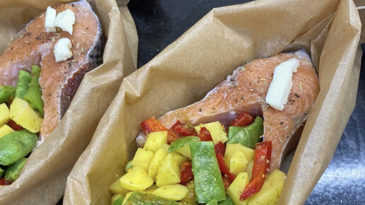 Рыба с овощами в лодочках из пергамента