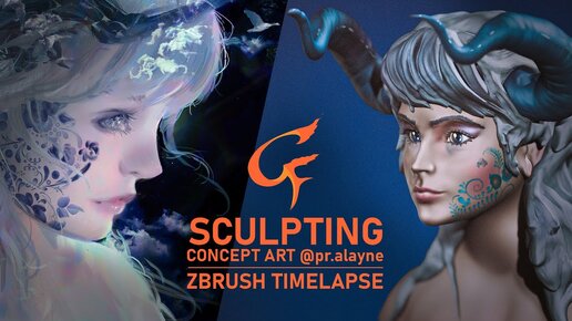 ДЕЛАЮ 3D МОДЕЛЬ РОГАТЕНЬКОЙ ДЕВУШКИ ПО КОНЦЕПТ АРТУ @pr.alayne || ZBRUSH TIMELAPSE