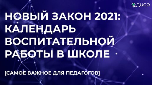 Вебинар "Новый закон 2021: что должен включать календарь воспитательной работы в школе"