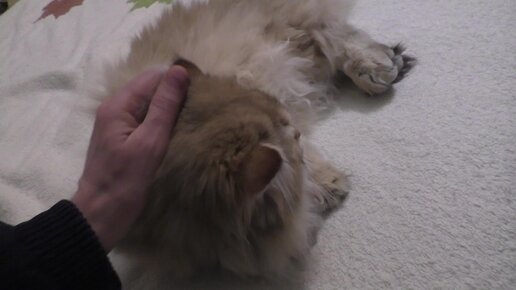 Кот Кося переворачивается на спину подставляя живот.