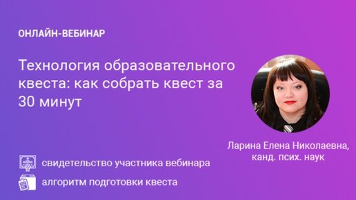 Вебинар «Технология образовательного квеста: как собрать квест за 30 минут»