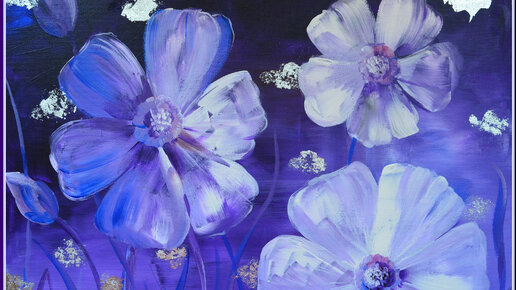 Как нарисовать цветы акрилом. Фиолетовое цветочное настроение с поталью. Акрил