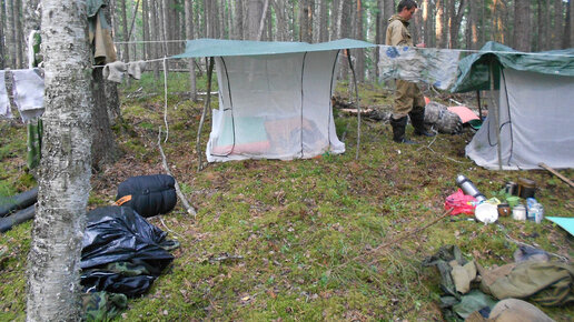 4 месяца в тайге. Сезон 2016.№ 6. Ночевка в тайге под тентами. Рыбалка. Ханты