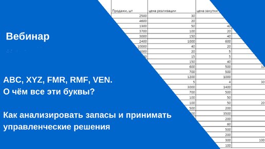 Запись вебинара "ABC, XYZ, FMR, VEN, RFM о чем эти буквы. Как анализировать запасы и принимать управленческие решения"