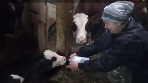 У нас Первотёлка /Отёл/Дойка коровы/Первое кормление теленка.