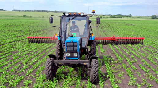 Трактор МТЗ-82 на узких шинах работает с бороной ротационной БР-12 - обработка сахарной свеклы!