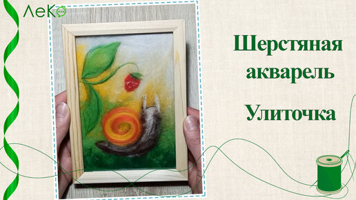 Картина из шерсти Улиточка. Шерстяная акварель.