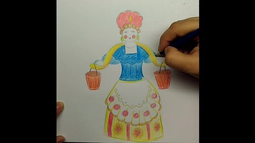 Как нарисовать дымковскую игрушку ✿ Дама с коромыслом ✿ Рисунок в школу