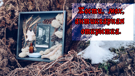 DIY. Ассамбляж. Кости, мох и антикварная открытка.