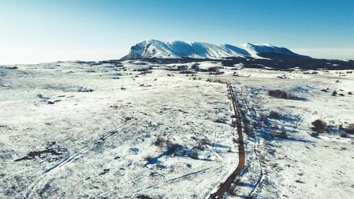 Релакс-видео: вид на заснеженный Чатыр-Даг в Крыму