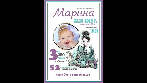 Метрика для малышки, своими руками в фотошоп. Используем картинки, которые понравились и добавляем фото.