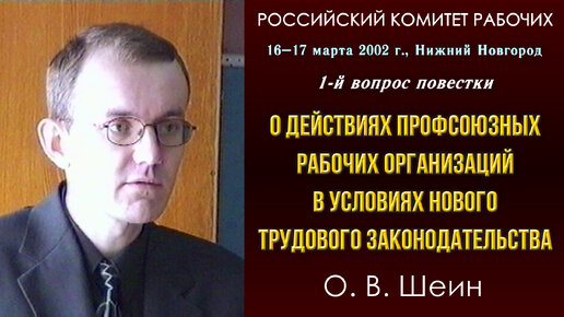 О действиях профсоюзных рабочих организаций в условиях нового трудового законодательства. О. В. Шеин. РКР. 16–17.03.2002 г.