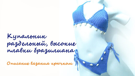 Купальник вязаный крючком, плавки бразилиана с высокой посадкой по бокам. Описание вязания