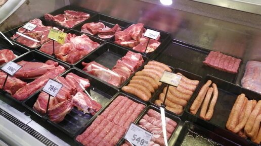 Мясной отдел в Сербском супермаркете.