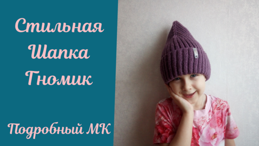 Стильная шапка спицами _Гномик_ с удлиненной макушкой. Подробный МК для начинающих!