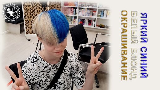 Модное окрашивание волос - яркий синий цвет и белый блонд для девочки