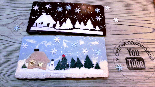 Новогодний зимний пейзаж на ШОКОЛАДной плитке🎄 Шоколадная открытка ❄ Фантазийный шоколад ☃🎁