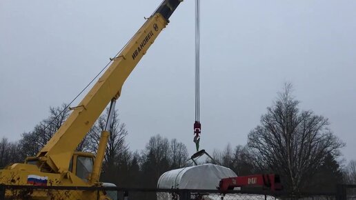 Кран и манипулятор объединились. Доставка бани бочки в готовом виде. От начала до конца