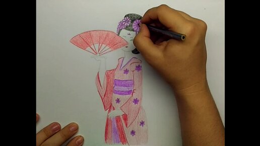 Как нарисовать японку ❤ Нарисовать девушку в кимоно ❤ Женщина с веером ❤ Урок рисования