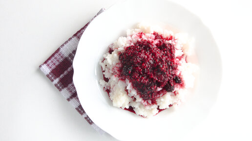 Простой и вкусный завтрак. Рисовая каша с ягодным соусом. Малина, ежевика или любые другие ягоды.
