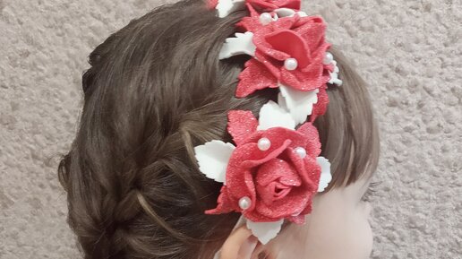 Красивый ободок с Розами из глиттерного фоамирана.
