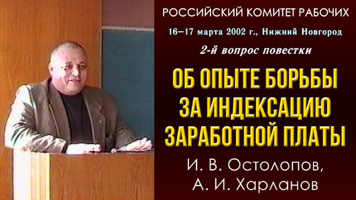 Об опыте борьбы за индексацию заработной платы. И. В. Остолопов, А. И. Харланов. Российский комитет рабочих. 16–17.03.2002.